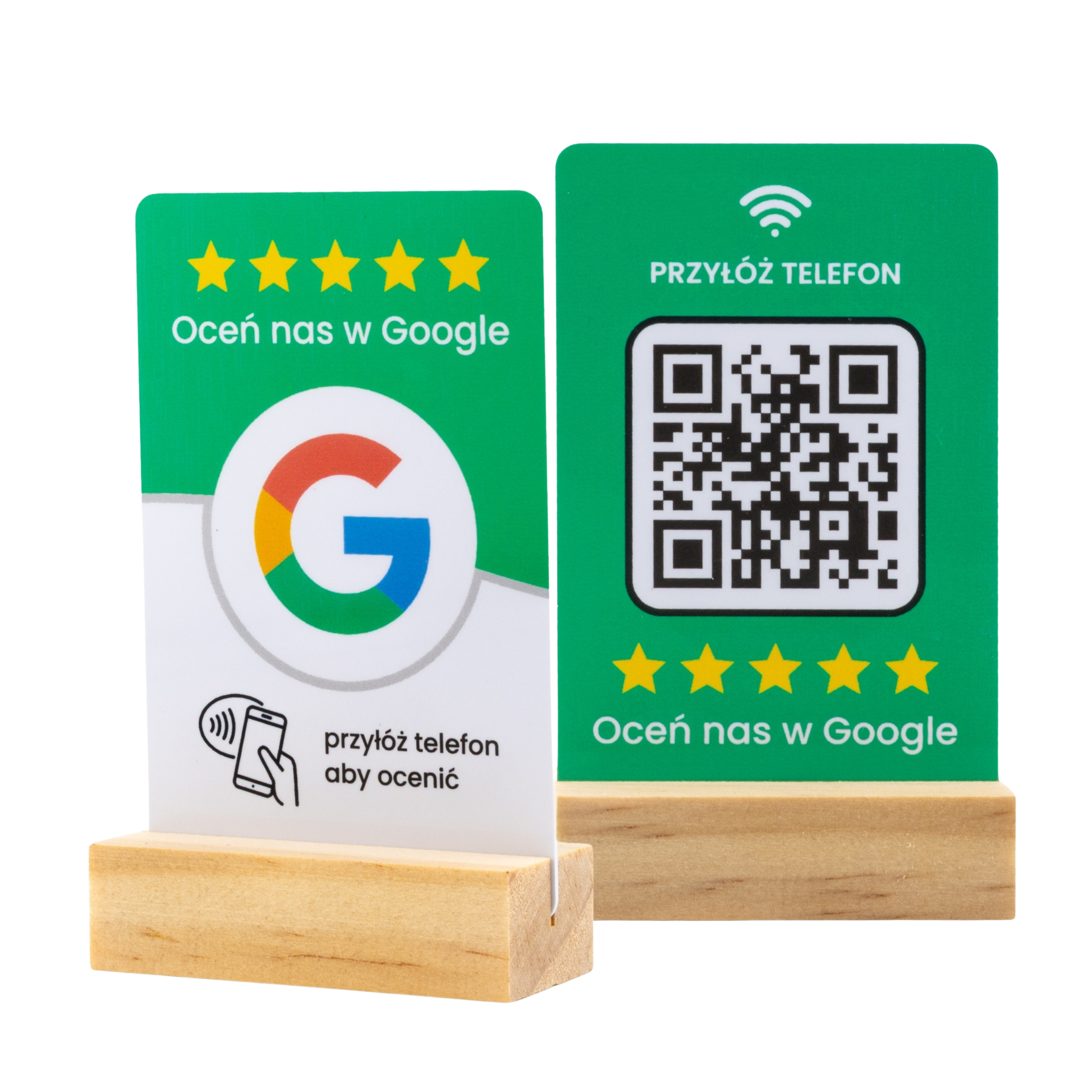 Karta NFC opinie Google - kod QR, dwustronna, google stojak pionowy